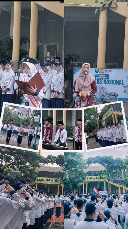 SMP Namira melaksanakan upacara bendera dalam rangka memperingati Hari Pers Nasional Tahun 2026 dengan mengusung tema “Pers Sehat, Ekonomi Berdaulat, Bangsa Kuat.” Kegiatan ini diikuti oleh seluruh siswa, guru, dan tenaga kependidikan SMP Namira dengan tertib dan khidmat.